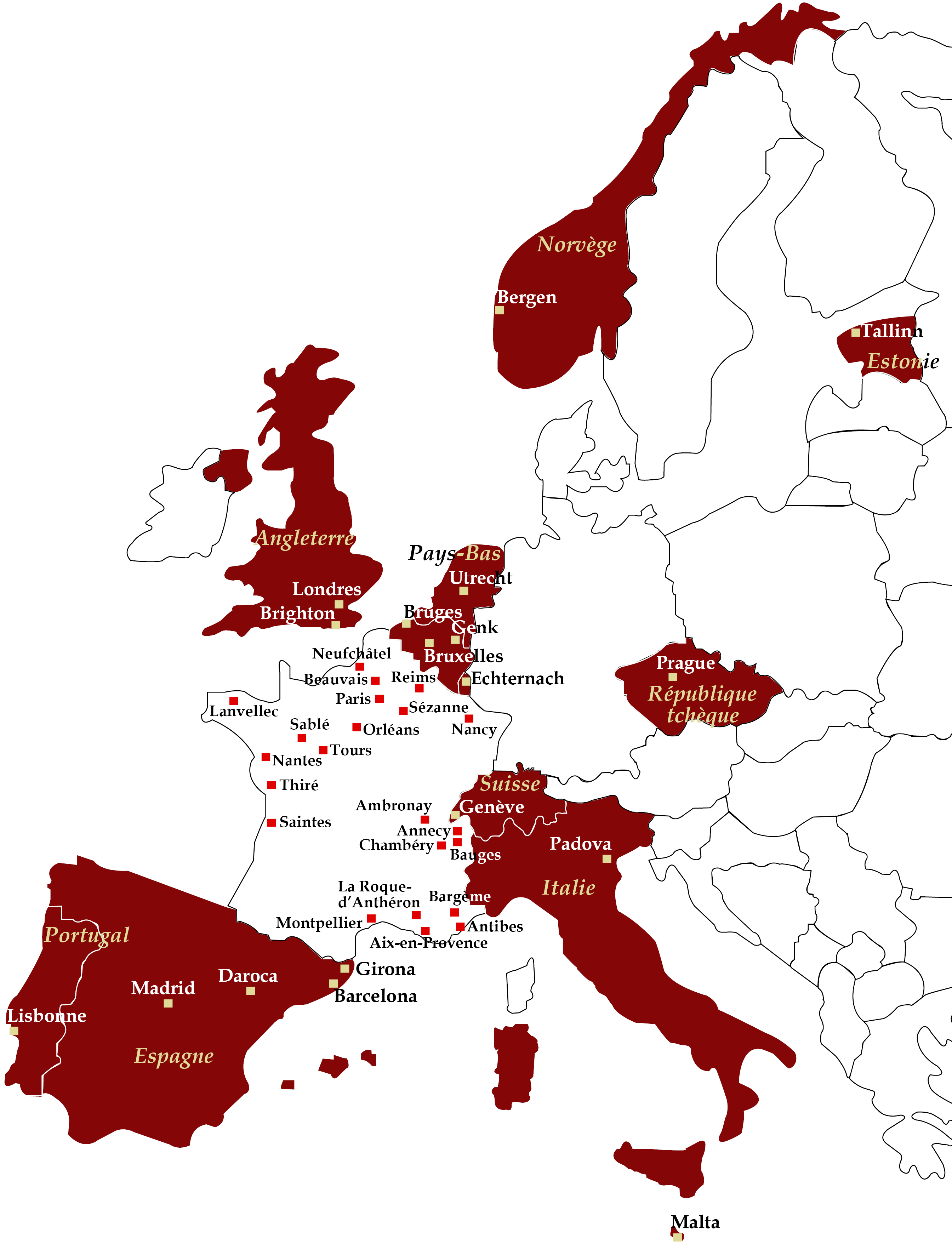 Aix-en-Provence, Ambronay, Annecy, Antibes, Barcelona, Bargème, Beauvais, Bergen, Berkeley, Boston, Brighton, Bruges, Bruxelles, Chambéry, Cité de la musique, Daroca, Festival Couperin, Festival d’Echternach, Festival des Bauges, Festival Radio France Montpellier, France Musique, Genève, Genk, Girona, Ivry-sur-Seine, Jaraguá do Sul, La Roque d’Anthéron, Lanvellec, L’Escurial, Lisbonne, Londres, Madrid, Malta, Mexico, Nantes, Nancy, Neufchâtel, Opéra comique, Orléans, Padova, Port-Royal des Champs, Prague, Reims, Sablé, Saintes, Sézanne, Tallinn, Théâtre du Châtelet, Thiré, Tours, Utrecht, Valençay, Versailles, Washington, Wilmington…